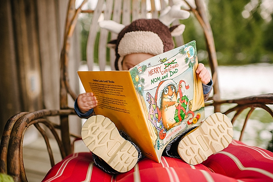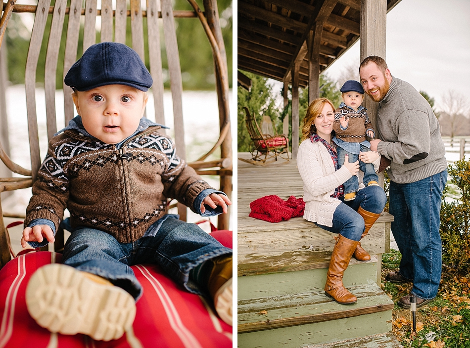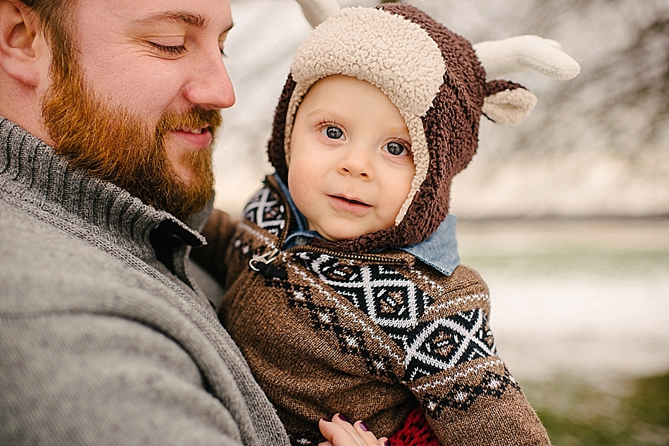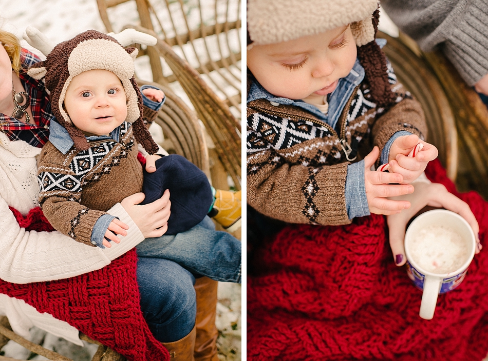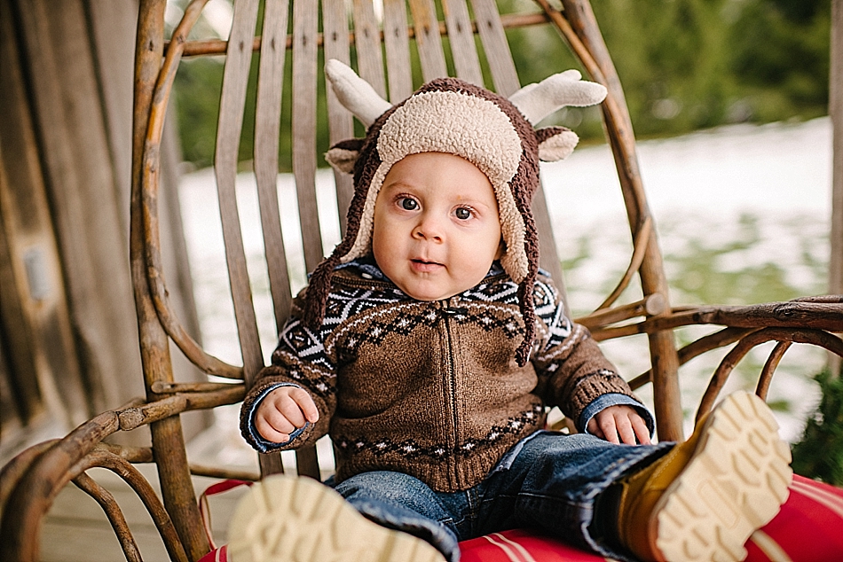 If ever there was a family to have their Christmas photos taken at the cabin, it’s the Rudd family! When Caitlin and Jeff told me that their son Garrett’s nursery theme is a cabin, I think I squealed. How cute is that?! I’ve never seen a cabin nursery! Garrett fit right in, especially with his antler hat and cozy sweater! I think you’re all going to agree that Garrett is the perfect blend of his mom and dad – I look at this cutie and can see features of both his parents! This is the Rudd family’s first Christmas as a family of three, which is so exciting! Garrett is nine months old, so he is at the fun age where he is interacting a little more and he is SO expressive. His whole face lights up when he smiles! I think one of my favorite moments from the Rudd session is when Garrett discovered the whipped cream in his mama’s mug of cocoa – he was REALLY loving that yummy stuff! Enjoy Christmas at the Cabin with the Rudd’s!